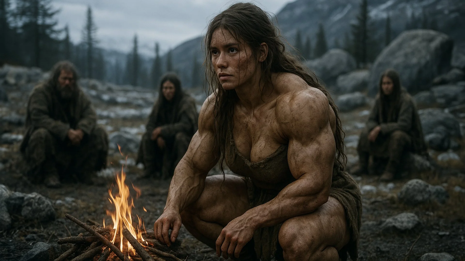 In a time before gods, there was her. Watch as this prehistoric muscle goddess dominates nature and her village.